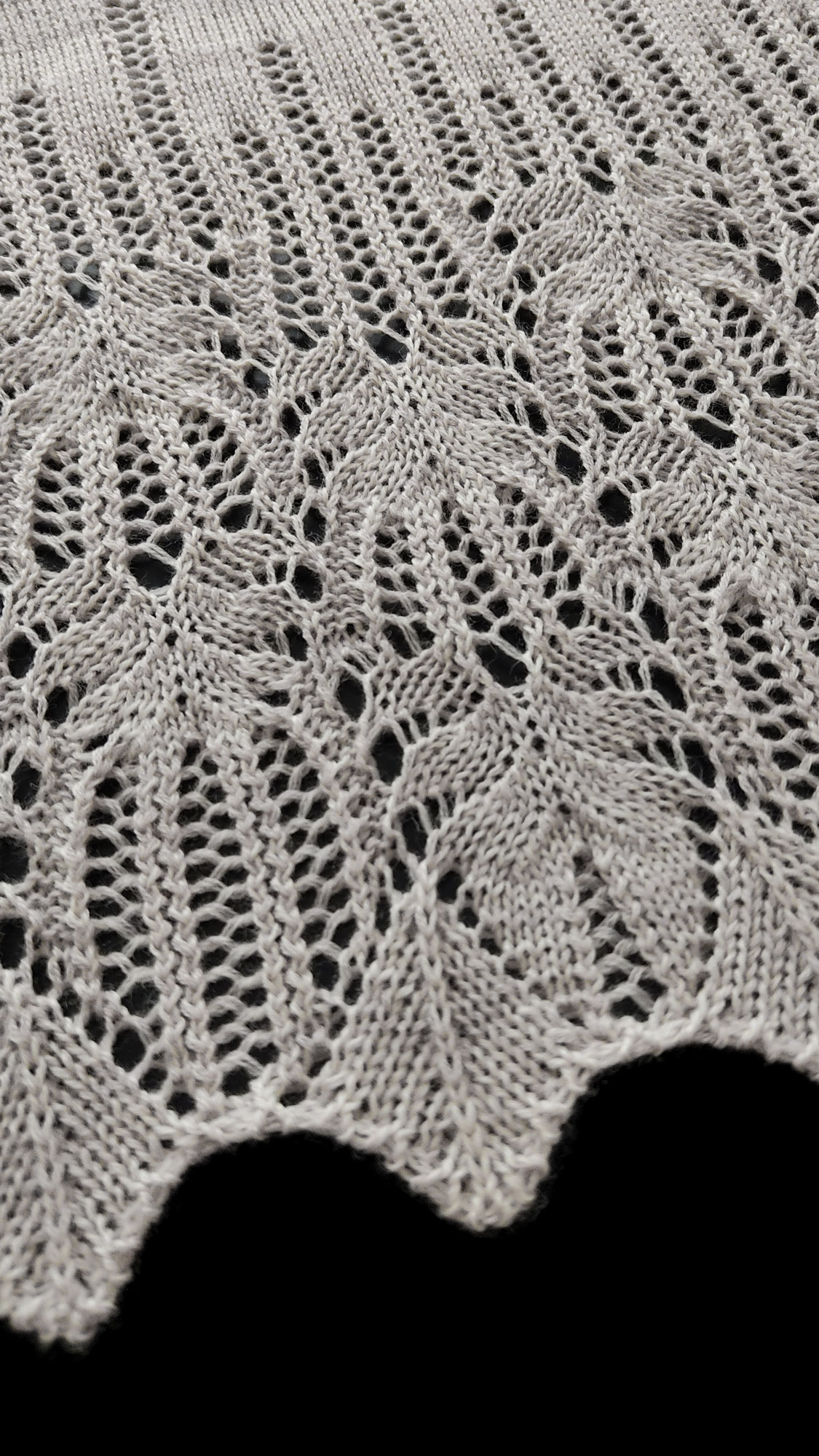 Il nome di questa sciarpa è Frost Flower lace shawl, di Foldi-knit. Il loro lavoro è stato, oltre all’aver disegnato il punto, la traduzione del pattern per lavoro ai ferri in un pattern per le macchine da maglieria Passap, con trasferimento manuale dei punti. Il mio, quello di tradurlo per le Brother elettroniche, usando il Dak-9 e il carrello Lace per trasferire le maglie in automatico. Il sofware consente il caricamento dello schema in simboli alla macchina (download) e il controllo del lavoro ad ogni passata di entrambi i carrelli coinvolti (interactive knitting).
