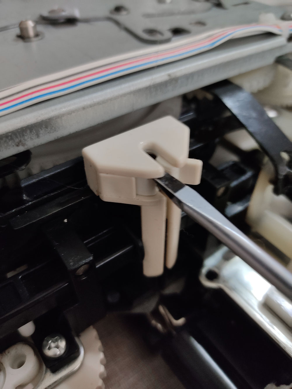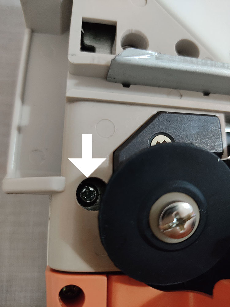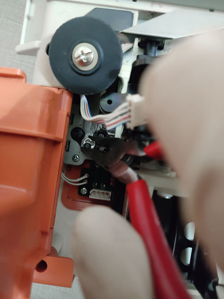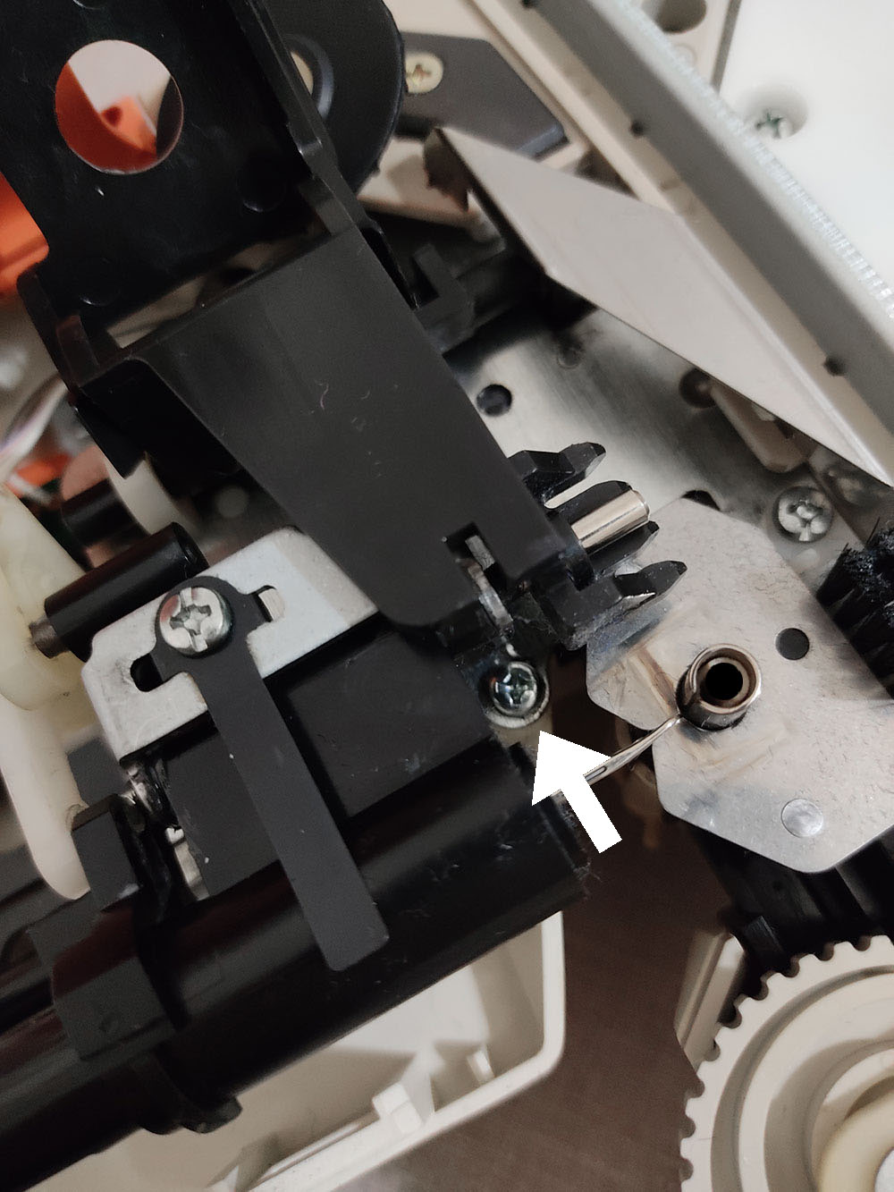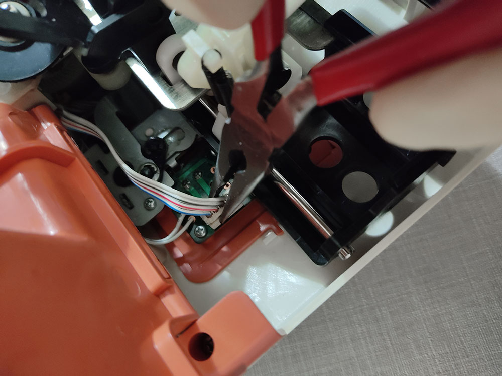 Andando al sodo, per modificare il Modamatic bisogna togliere la scocca e sostituire il tubicino mono-filato del beccafilo (yarn feeder) con quello doppio stampato in 3D, condiviso da Susan (lo trovi qui su Thingiverse )