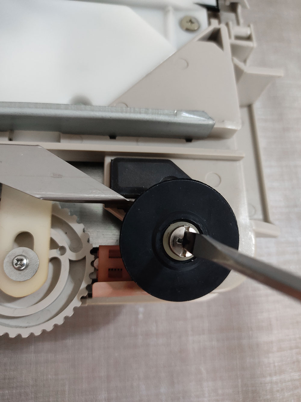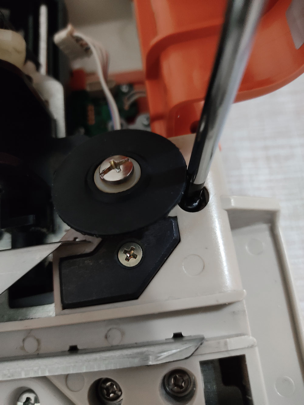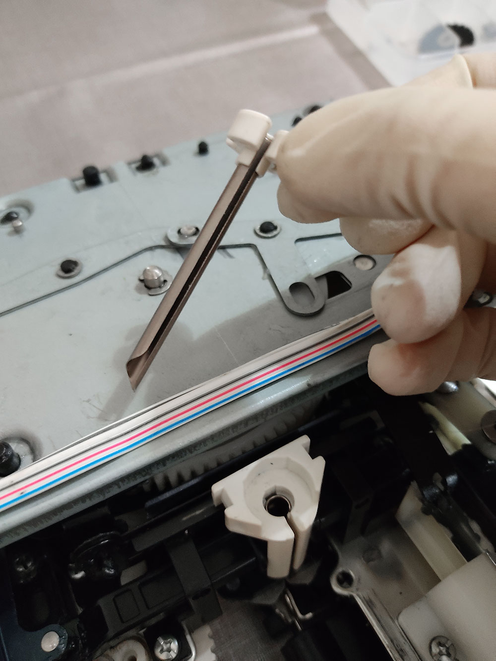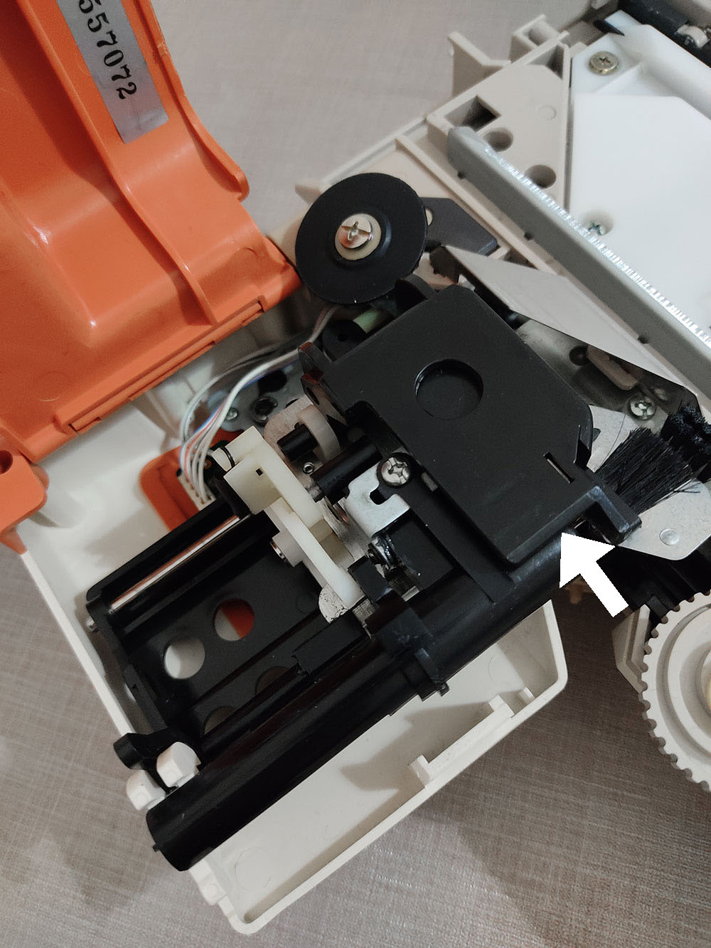 Andando al sodo, per modificare il Modamatic bisogna togliere la scocca e sostituire il tubicino mono-filato del beccafilo (yarn feeder) con quello doppio stampato in 3D, condiviso da Susan (lo trovi qui su Thingiverse )